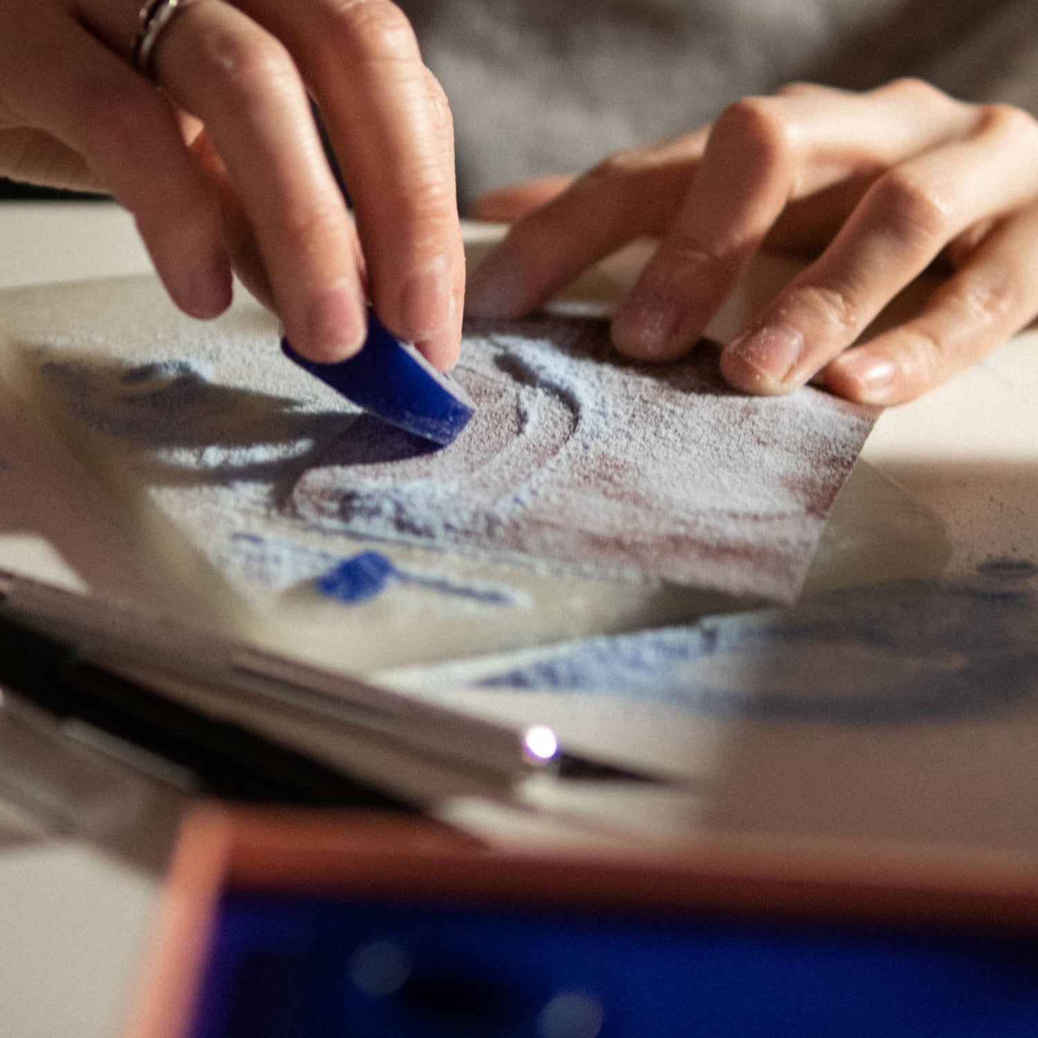 Bitte arbeite vorsichtig und konzentriert, um dich nicht zu verletzen - die Werkzeuge sind scharf! Folge dabei den Schritten im Booklet und achte grundsätzlich darauf, nicht zu viel Druck auf deine Wachsform auszuüben, da dies zu ihrem Zerbrechen führen kann. Mache dir aber keine Sorgen, wenn die Wachsform lange zwischen deinen Fingern liegt, denn das Wachs schmilzt erst bei einer Temperatur von über 90°C.