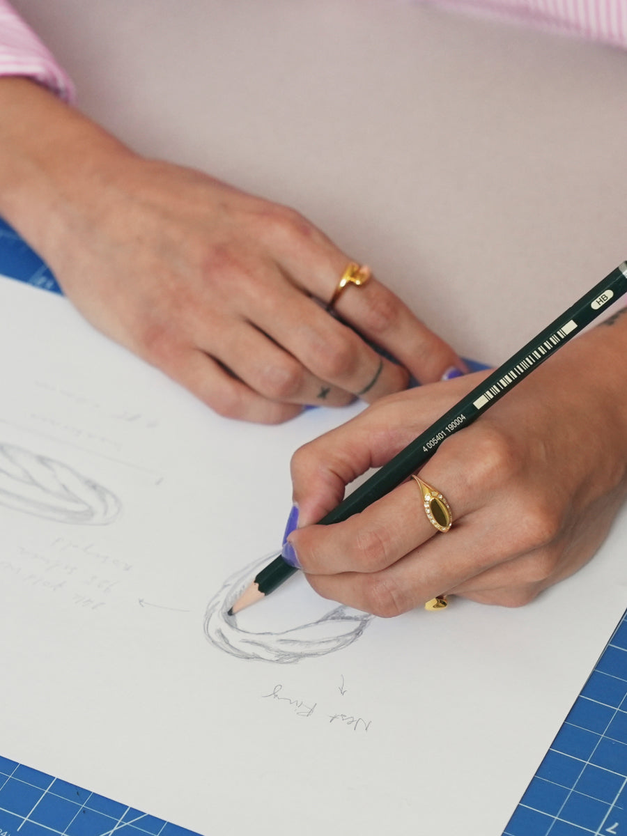 Wir glauben an anhaltende Qualität, das Reparieren von Dingen und das Kreieren eines zirkulären Produktes. Wir stellen Produkte aus Materialien her, die viele Leben hatten, bevor sie sich in dein neues Schmuckstück verwandeln. Wie traurig wäre es, wenn etwas, das seit Milliarden Jahren da ist, verschwendet würde? Daher produzieren wir mit einem klaren Zweck, auf Bestellung und mit Fokus auf gutes Handwerk.