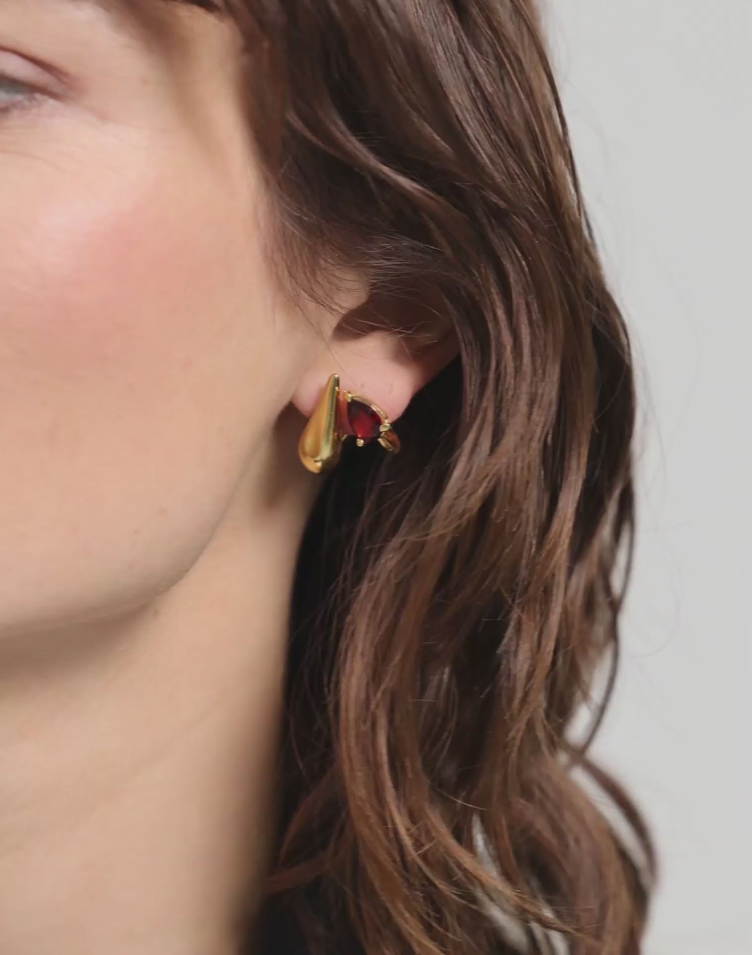A bold garnet sits atop, shaped like a drop: the gemstones add a touch of color and sparkle.