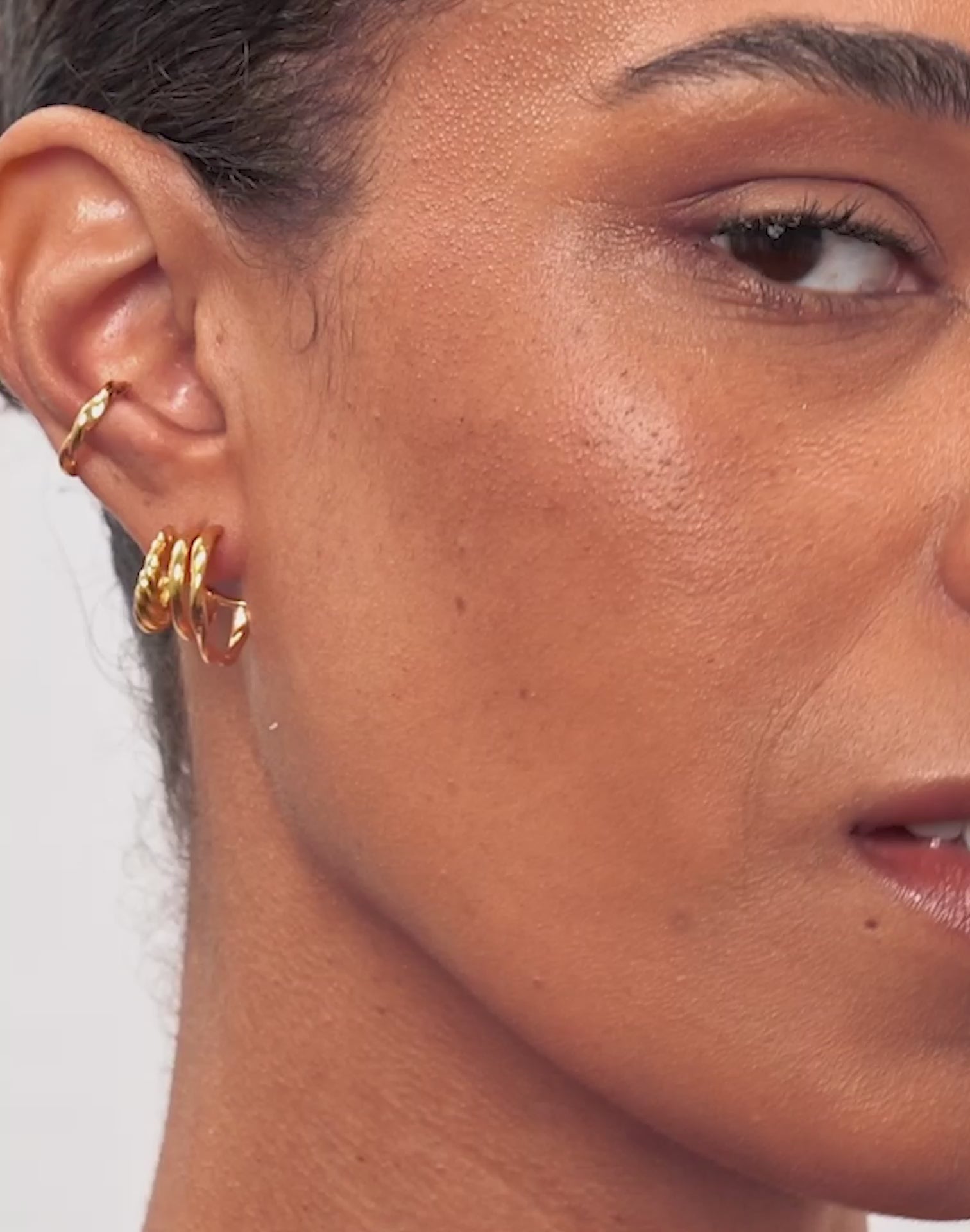 Three's a party! The Flux Triple Hoops are an extension of our Flux Mini Hoops and give the illusion of a stacked creole trio. Perfect for those with only one ear hole who are looking for a stacking look. Wear one earring, get the look of three!