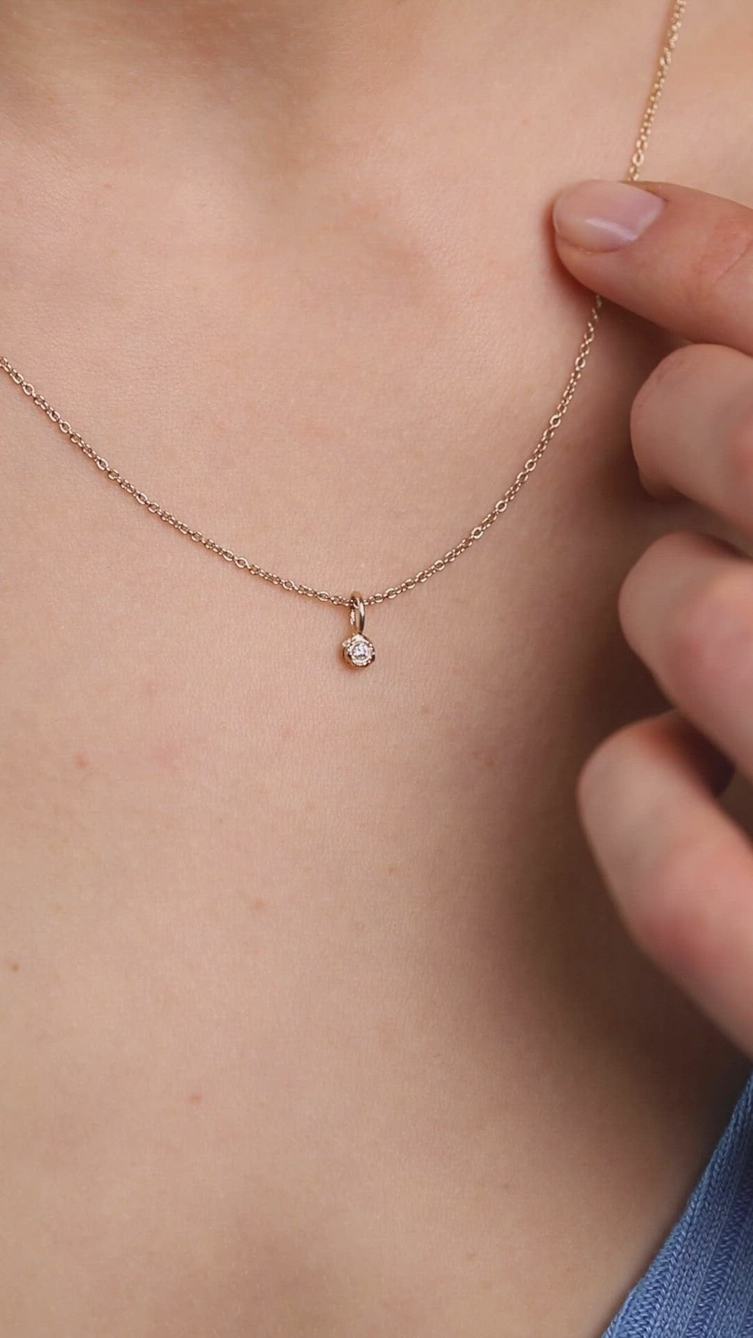 The Mater Diamond Necklace is our nature-oriented take to on a point of light necklace design. With an organically shaped, imperfect nest framing our fairly sourced diamond, you can’t go wrong. The Mater Diamond necklace is exclusively available in 14K recycled solid gold.