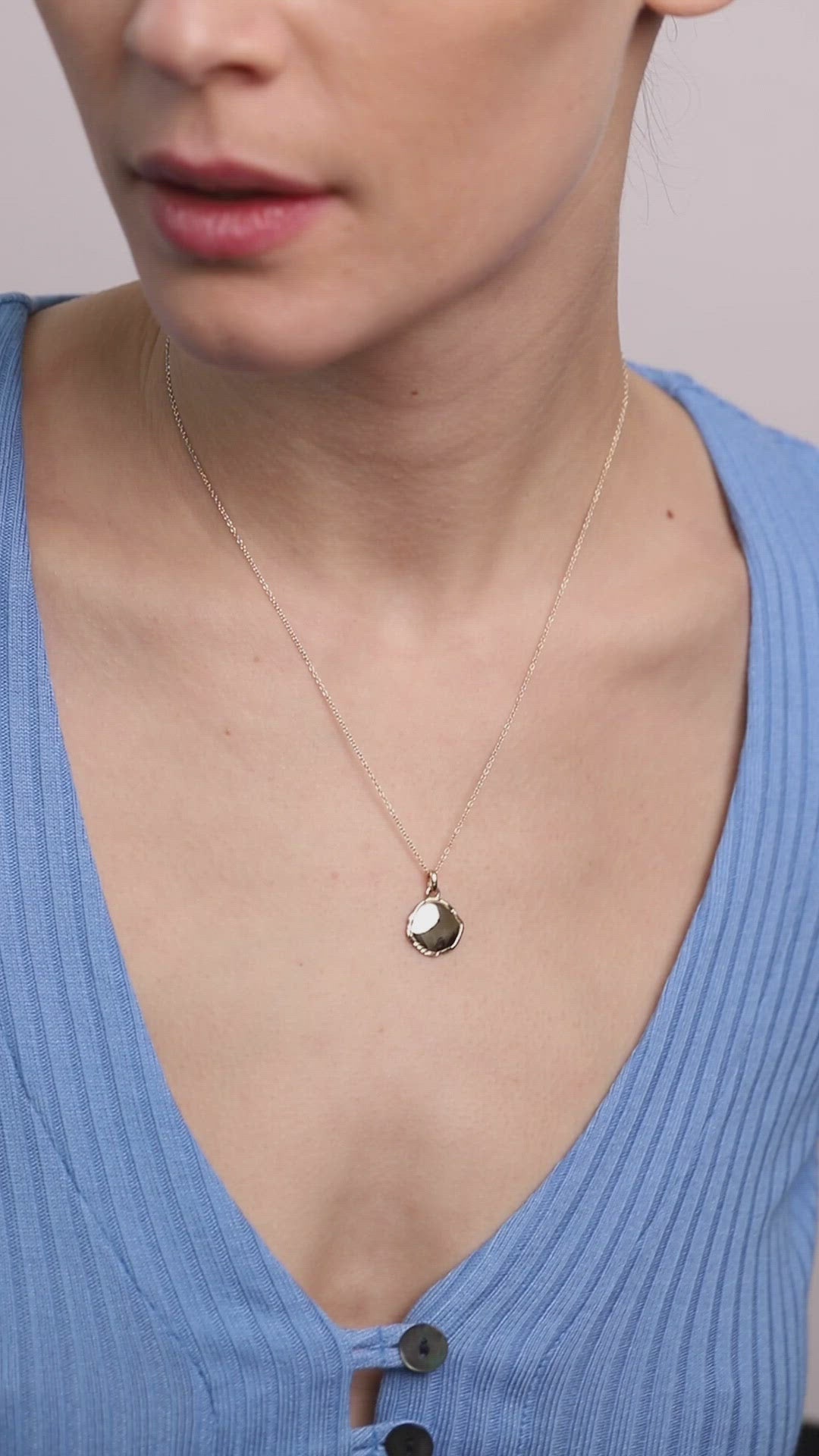 Like a little pool of morning dew, the Mater Medallion Necklace/Pendant catches the light beautifully. this organically shaped medallion is exclusively available in 14K recycled solid gold.