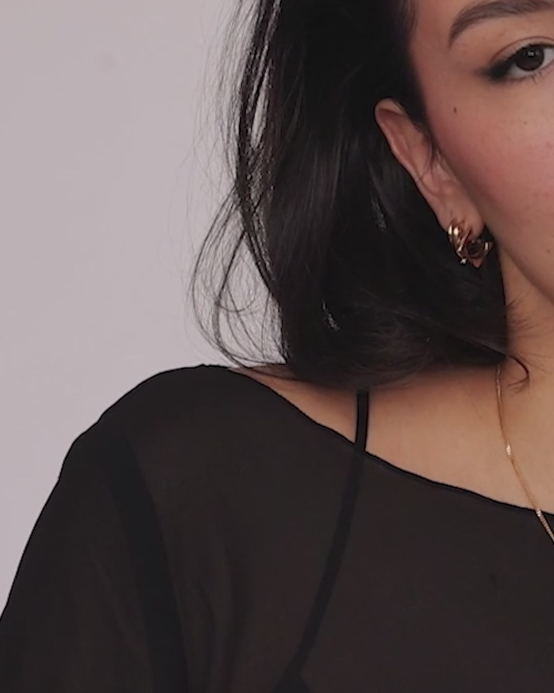 A sculptural form merging three hoops into one continuous curve. Inspired by architectural bricks, modernist lines, and a retro precision in detail—like an elevated building block. Secure hinge closure for effortless wear.