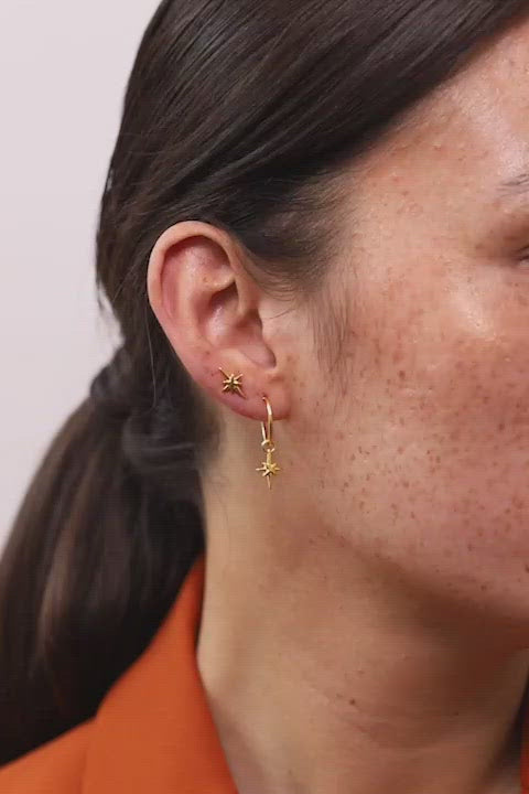 The Star Light Hoop Earrings feature a delicate star pendant, the symbol of protection and guidance. Sustainably crafted from recycled solid gold, gold vermeil, or silver and shipped straight from the goldsmith to you.